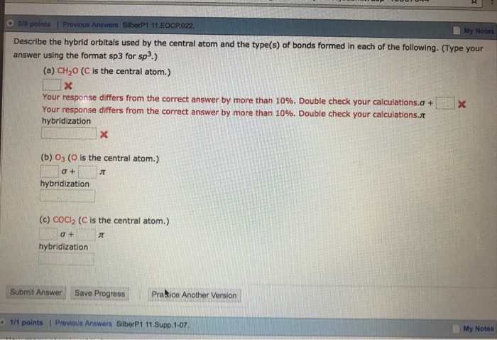 Describe the hybrid orbitals used by the central atom and the types of bon 0705 Describe the hybrid orbitals used by the central atoms and the types of. That makes 4 orbitals aka sp 3. A anionic charge.
